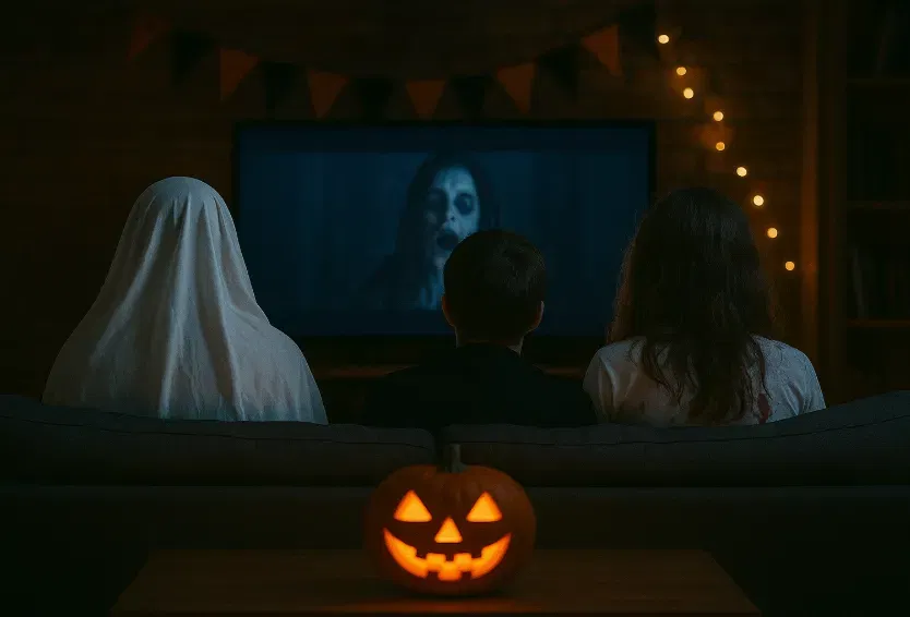 Киноночь ужасов — классические фильмы вроде «Хэллоуин», «Кошмар на улице Вязов» или современные хорроры создадут нужную атмосферу.