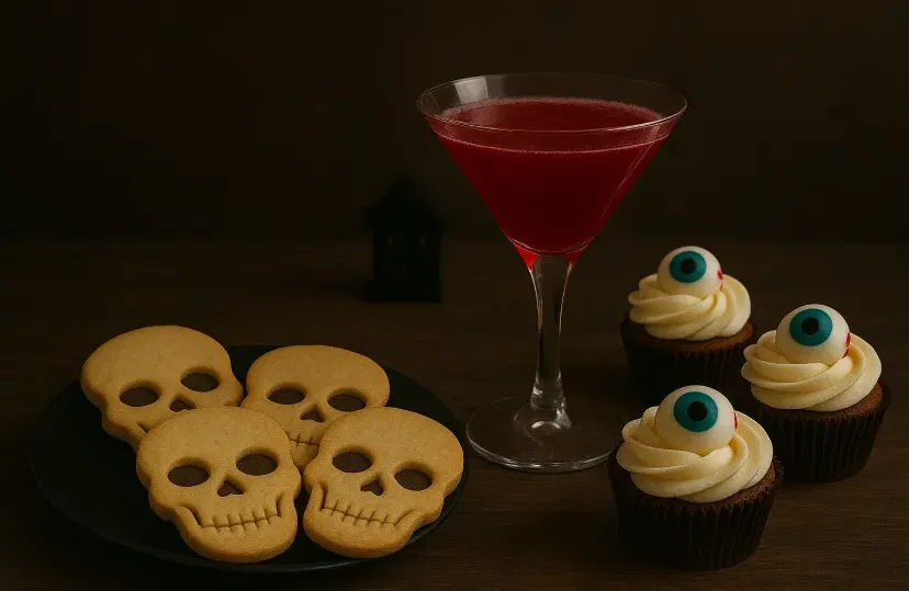 Угощения — приготовьте печенье в форме черепов, «кровавый» коктейль из гранатового сока или капкейки с глазурью в виде глаз.